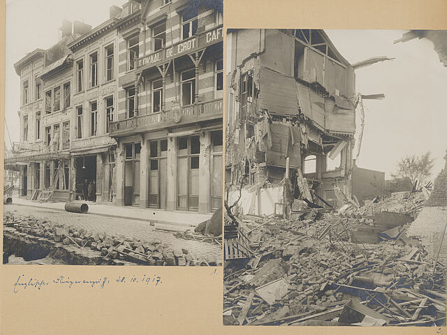 Dieses Fotoalbum wurde von den Offizieren des Gouvernementsstabes der Festung Antwerpen einem der ihren zum Abschied geschenkt. Es vereint Fotos und Fotopostkarten mit schriftlichen Dokumenten zu einzelnen Geschehnissen. Antwerpen war von 1914 bis 1918 deutsch besetzt.