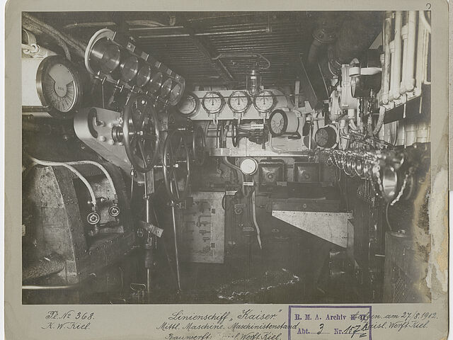 Die hier gezeigten Fotos stammen aus dem Konstruktions-Departement des Reichsmarineamts. Sie zeigen verschiedene Maschinenräume von Linienschiffen der Kaiserlichen Marine und stellen damit eine technikgeschichtliche Quelle besonderer Art dar.