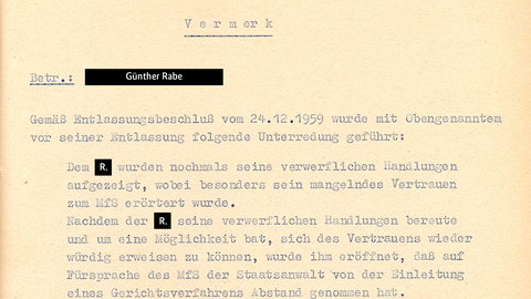 Am 19. November 1959 verhafteten drei Stasi-Mitarbeiter Rabe in seiner Wohnung und brachten ihn in die MfSMinisterium für StaatssicherheitDas Ministerium für Staatssicherheit (umgangssprachlich oft kurz "Stasi") war politische...-Untersuchungshaftanstalt Pankow. Außerdem stellte die Geheimpolizei die Jacutin-Flasche sicher. Die Abteilung IXAbteilung IX1950 entstanden; 1953 Aufwertung zur Hauptabteilung IX. der VerwaltungVerwaltung1. Organisationsstruktur des MfS für Aufgabenkomplexe, die in der Zentralstelle durch einen... Groß-Berlin legte einen UntersuchungsvorgangUntersuchungsvorgangBei einem strafrechtlichen Ermittlungsverfahren des MfS und ggf. dem späteren Gerichtsverfahren... an. Sie holte sich Informationen zu Rabe bei seinen früheren Arbeitgebern ein und befragte ihn und seine Ehefrau. Außerdem nahm sie weitere Untersuchungen auf Spuren des Fallenmittels an Rabes persönlichen Gegenständen vor: seinem Mantel, seinem Personalausweis und einigen Tabletten. Die Technische Untersuchungsstelle (TU) des MfS stufte die Objekte jedoch alle als unverdächtig ein.