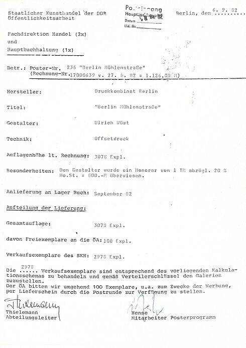 Überliefert sind ferner die Exporte von zeitgenössischer Kunst für die Jahre 1982-1991. Aus der Gründungsphase sind Übernahmen von privaten Galerien und Werkstätten, die sog. "Angliederung" an den Staatlichen Kunsthandel, dokumentiert. Darüber hinaus liegen Unterlagen zu Bauvorhaben des Staatlichen Kunsthandels vor. Auch die durch das Treuhandgesetz veranlasste Privatisierung und Reorganisation des Staatlichen Kunsthandels ab 1990 wird umfangreich in den Akten abgebildet. Der Bestand hat eine Laufzeit von 1974 bis 2002.