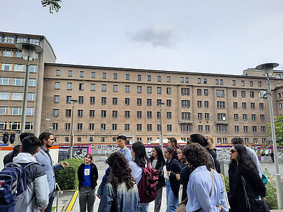 Am Donnerstag verbrachten Studierende der Fakultät für Design, Landscape and Architecture von der Universität von Toronto mehrere Stunden auf dem Gelände der ehemaligen Stasi-Zentrale. Die Gruppe ist spezialisiert auf das Thema "DDR-Architektur" und wurde von einem Referenten des Bildungsteams über Geschichte und Entstehung des Areals und der Arbeit des Archivs informiert.
