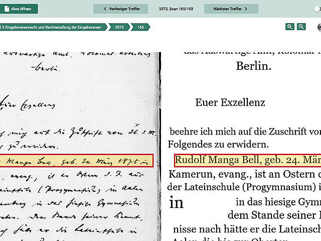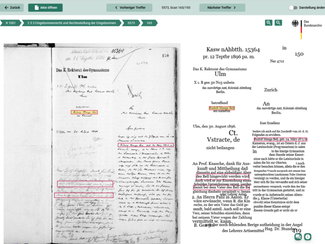 Das Bundesarchiv ermöglicht es in seinem Lesesaal in Berlin-Lichterfelde, den gesamten Inhalt der Dokumente des Reichskolonialamtes zu durchsuchen. Die unter anderem in alten Handschriften verfassten Akten wurden mittels Künstlicher Intelligenz in für Menschen und Maschinen besser lesbare Schrift übertragen. Dazu ging im Frühjahr 2021 ein Projekt zur Erstellung KI-gestützter Transkriptionen an den Start.