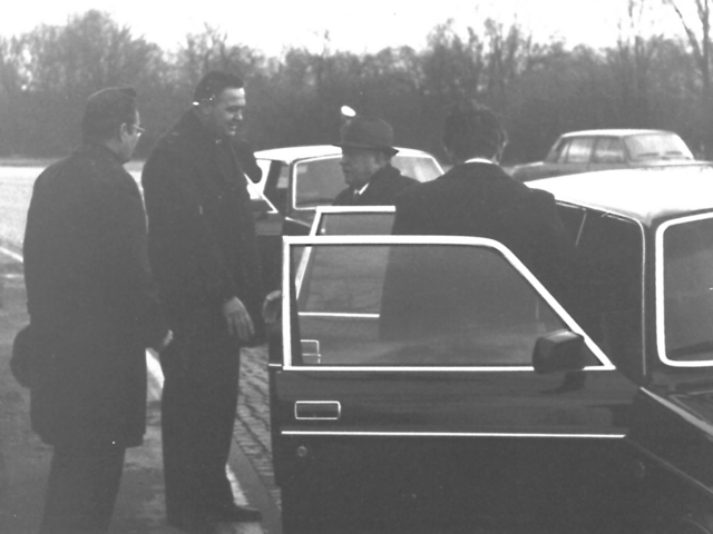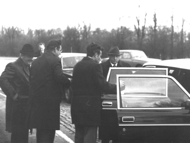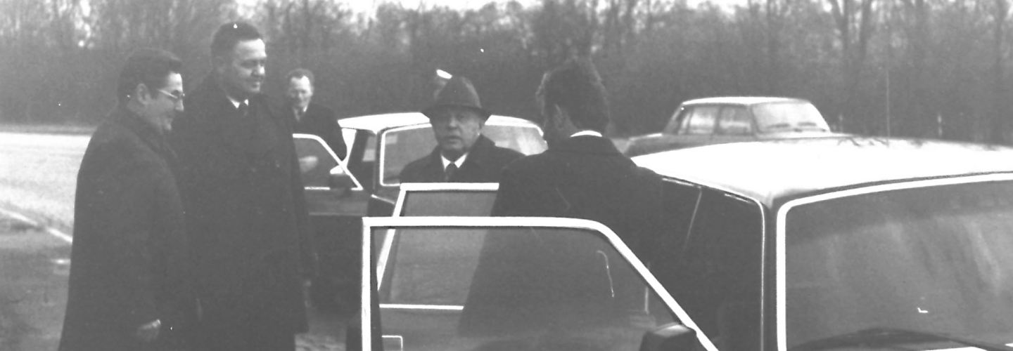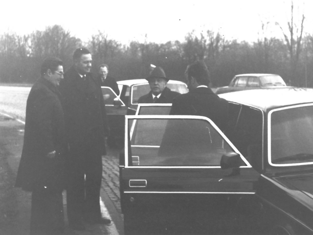 Eine überlieferte Bilderserie zeigt eine Begegnung Erich Mielkes (mit Hut) mit den nacheinander amtierenden Leitern der Bezirksverwaltung Suhl, Heinz PommerPommer, Heinz24.03.1929 - 24.11.2004 (1975–1981) und Gerhard LangeLange, Gerhard20.01.1935 - 30.01.1990 (1981–1989). Pommer und Lange scheinen auf Mielke zu warten und diesen zu begrüßen.