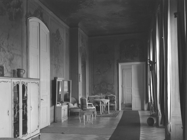 Die Innenansichten sind verschiedene Aufnahmen eines Korridors und eines saalartigen Raumes mit Wand- und Deckengemälden, Kronleuchtern und reichen Stuckverzierungen. Der Korridor ist mit einer Sitzecke auf einem Teppich möbliert, wobei die Möbel nur zum Teil antik sind. In dem großen Raum stehen außer einem Flügel und zwei Tischen nur eine große Zahl moderner Stühle in Reihen. Vielleicht wurde dieser Raum für Vorträge oder Schulungen genutzt.