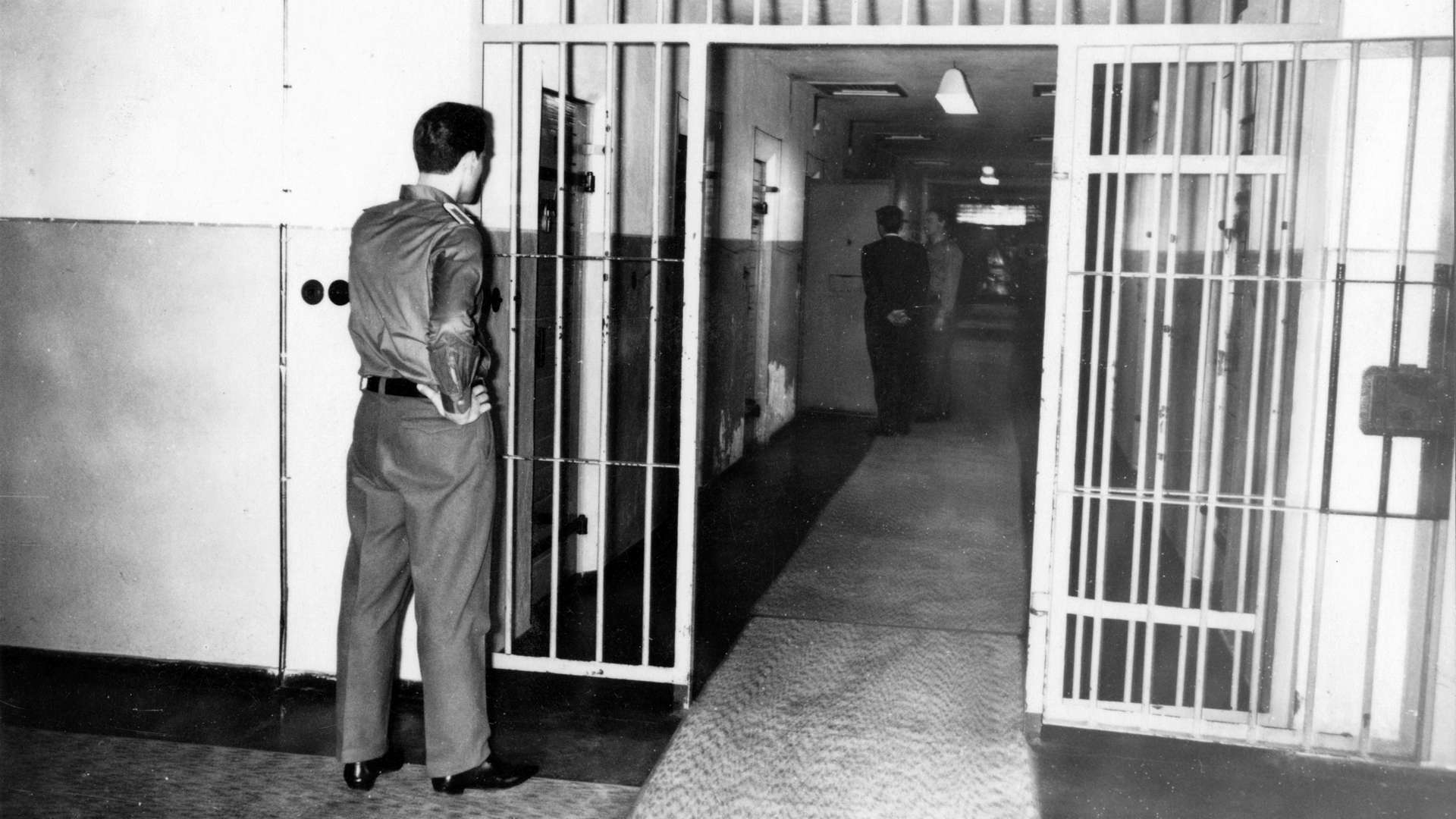 Blick in den Gefängnistrakt einer Stasi-Haftanstalt.,