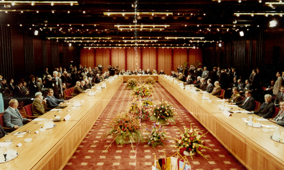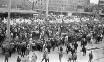 Demonstrationszug vor dem Palast der Republik bei der Kundgebung gegen staatliche Gewalt und für Meinungs- und Versammlungsfreiheit am 04. November1989 in Berlin-Mitte,