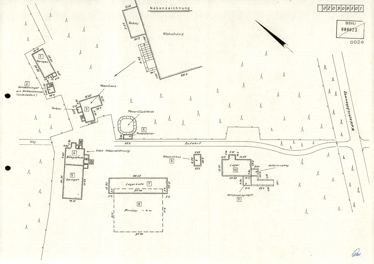 Das Grundstück befand sich seit 1965 in Rechtsträgerschaft des MfSMinisterium für StaatssicherheitDas Ministerium für Staatssicherheit (umgangssprachlich oft kurz "Stasi") war politische... (fast 2 ha), hinzu kamen 14 ha laut Nutzungsvertrag mit dem Staatlichen Forstbetrieb von 1968.