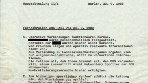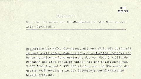 Ein Teil der Unterlagen zu Olympia 1988 in Seoul wurden von der Stasi im Herbst 1989 vernichtet. Die "Projektgruppe manuelle Rekonstruktion von Stasi-Unterlagen" im Stasi-Unterlagen-Archiv hat etliche der zerrissenen Unterlagen wieder zusammengesetzt. Dazu gehören auch Berichte des MfSMinisterium für StaatssicherheitDas Ministerium für Staatssicherheit (umgangssprachlich oft kurz "Stasi") war politische... über die sportlichen Ereignisse in Seoul sowie über Beobachtungen über das Leben in Südkorea.