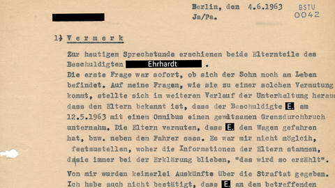 Die UV-Akten zur gescheiterten Busflucht enthalten unter anderem einen Vermerk des Staatsanwalts zu einem Gespräch mit den Eltern Klaus Ehrhardts. Daraus geht hervor, dass sämtliche Informationen zu den Ereignissen am 12. Mai streng geheim zu halten waren. Ehrhardts Eltern erhielten keine Auskunft über ihren Sohn und durften nicht über den Vorfall sprechen. Der Staatsanwalt setzte das MfS über das Gespräch in Kenntnis.