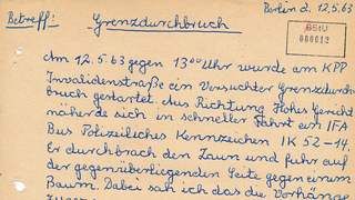 Am Mittag des 12. Mai 1963 säumte ein Menschenauflauf das Gelände um den Grenzübergang Invalidenstraße in Berlin. Östlich der Mauer versammelten sich Grenztruppen der Nationalen Volksarmee (NVA) um einen beschädigten BVG-Bus. Auf West-Berliner Seite beobachteten Augenzeugen das Geschehen.