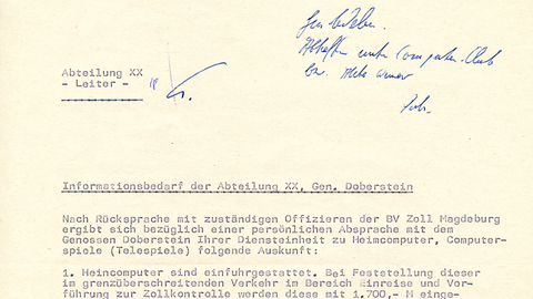 Aus einer Information der Bezirksverwaltung Magdeburg von 1986 geht hervor, dass der Zoll digitale Spiele weitaus restriktiver behandelte als Computertechnik.