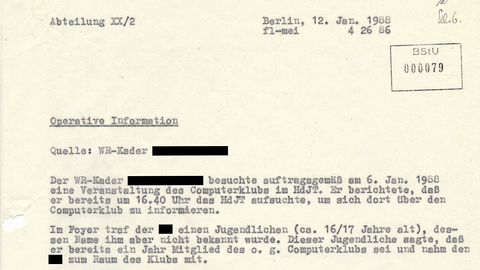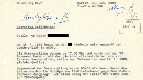 Anfang 1988 sammelte ein junger Mann für das MfS Informationen über Mitglieder und West-Technik im Ost-Berliner Computerclub.