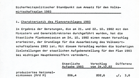 Sicherheitspolitischer Standpunkt zum Ansatz für den Volkswirtschaftsplan 1983